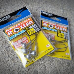 最近、サカマタ5″クラスのミドスト用に気に入っている”レンジローラー”ジグヘッド。 スウィングヘッドのようにロールしやすい上、#3/0フックなら強いのでまず伸ばされません。 7gと10gもぜひ欲しいところ、オーナーさんぜひ作ってください!