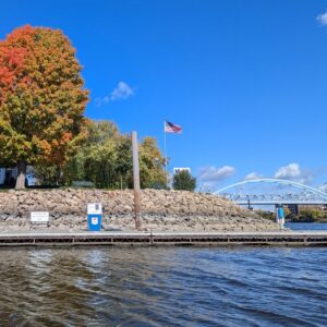 冬季水位のミシシッピリバーは、プリプラ時から70cmの大減水! マークしておいた木やリップラップはことごとく陸の上、全く別の河になってます。 綺麗な紅葉には癒されますが、一度水中堤防に座礁しました(滝汗)。