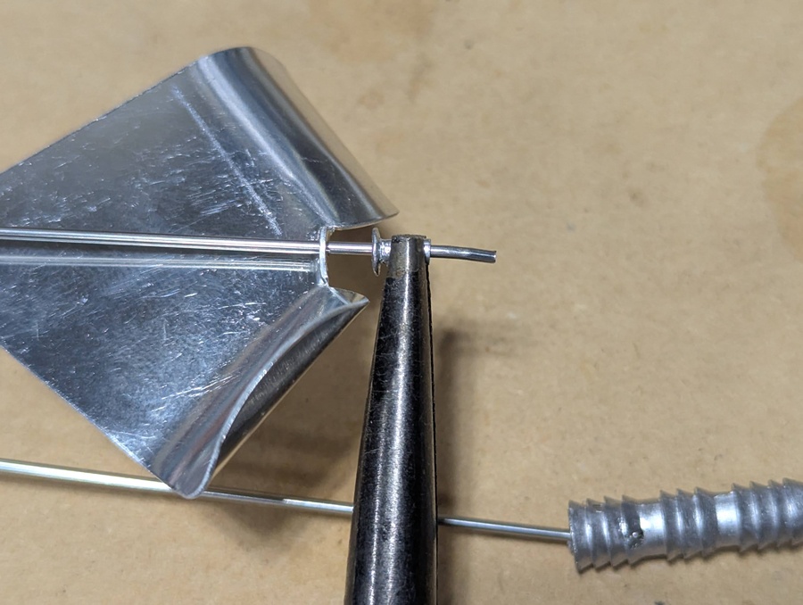 Then, I hold the rivet with pliers to keep it from spinning with the blade.