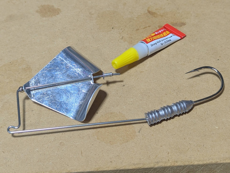 またカシメただけでは微妙に動いてしまうので、後ろ側から瞬間接着剤を流して固定しています。