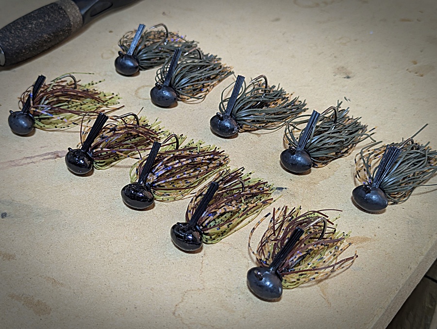 I prefer small football jigs with #2/0~3/0 hooks and short skirts.