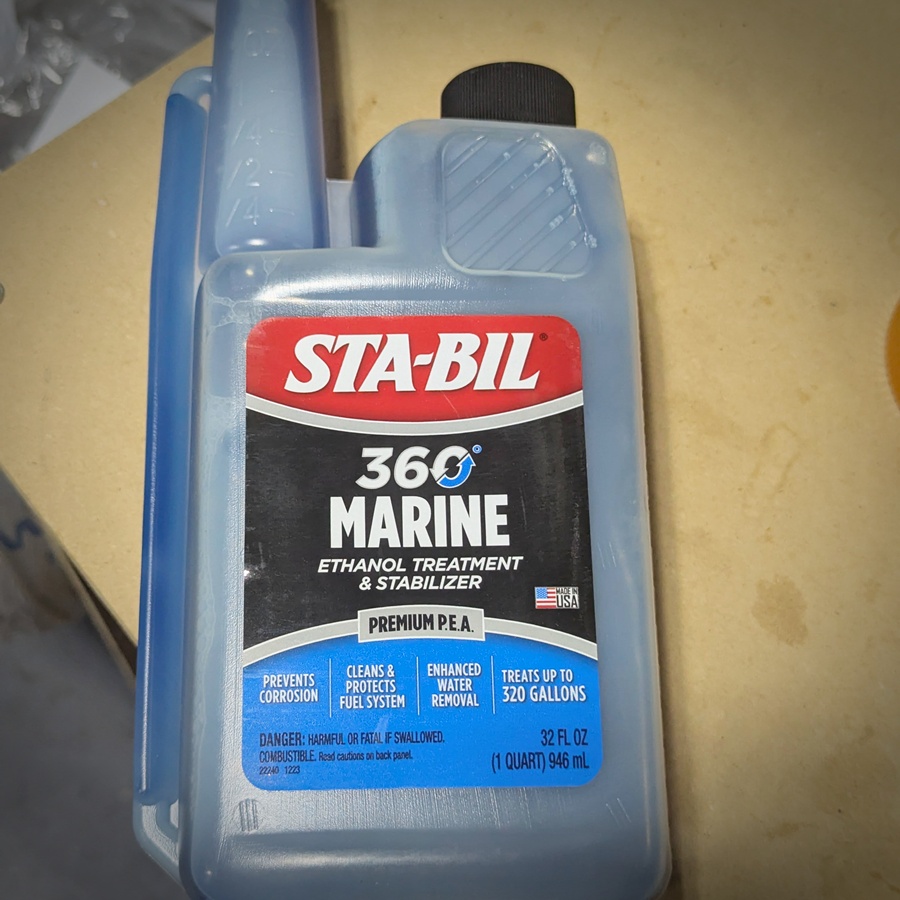 Since I can’t go fishing for a little while due to my wrist injury, I put a gas stabilizer in my boat.