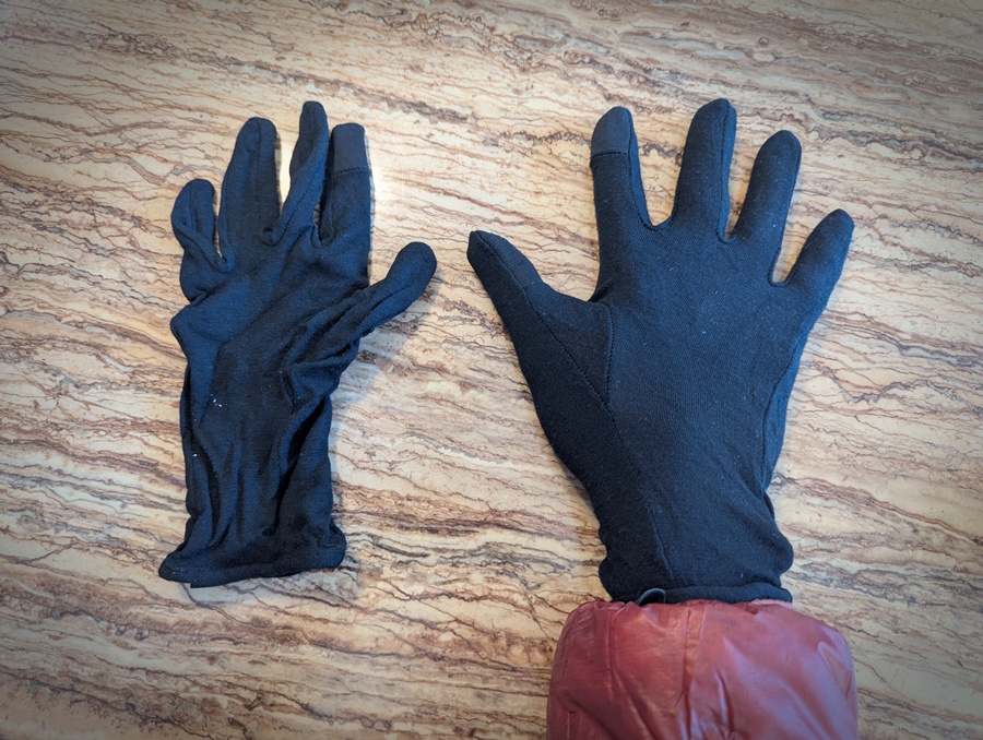 First, put on the thin inner gloves.