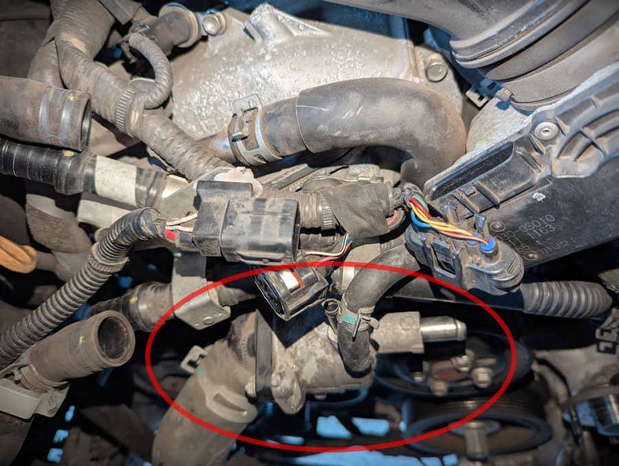 After the pump is in, replace the thermostat inside the housing (this part is relatively straightforward).
