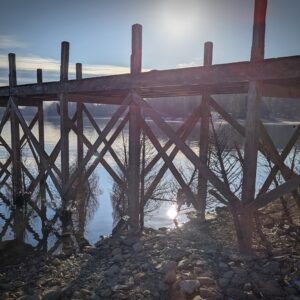 冬は減水が絡むことも多く、湖底調査にもピッタリの季節。 ちなみにこれは桟橋に絡むブラッシュパイルで、様々な形のバリエーションがあります。 たとえハイテク魚探が進歩しても、肉眼で直接見るのが一番ですね!