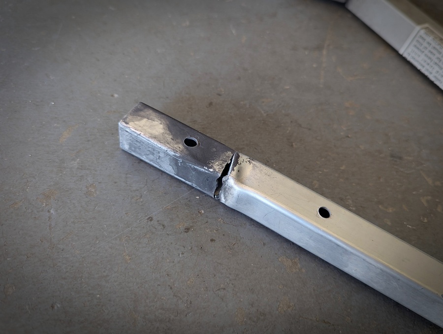 エンジンの重さで曲がっていくのを少しづつ戻しながら使うのですが、限界超えるとこの通りです。