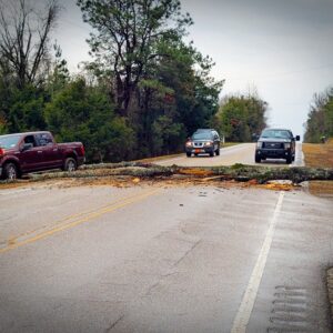 この前の帰路、サンダーストームで倒れた巨木が道路を封鎖! 山中の一本道で、どうしようかと皆途方に暮れていたら・・・後ろから来た車から”俺チェーンソー持ってるぜ!”と声が。 力を合わせて切った木をどかし、無事通れるようになりました。