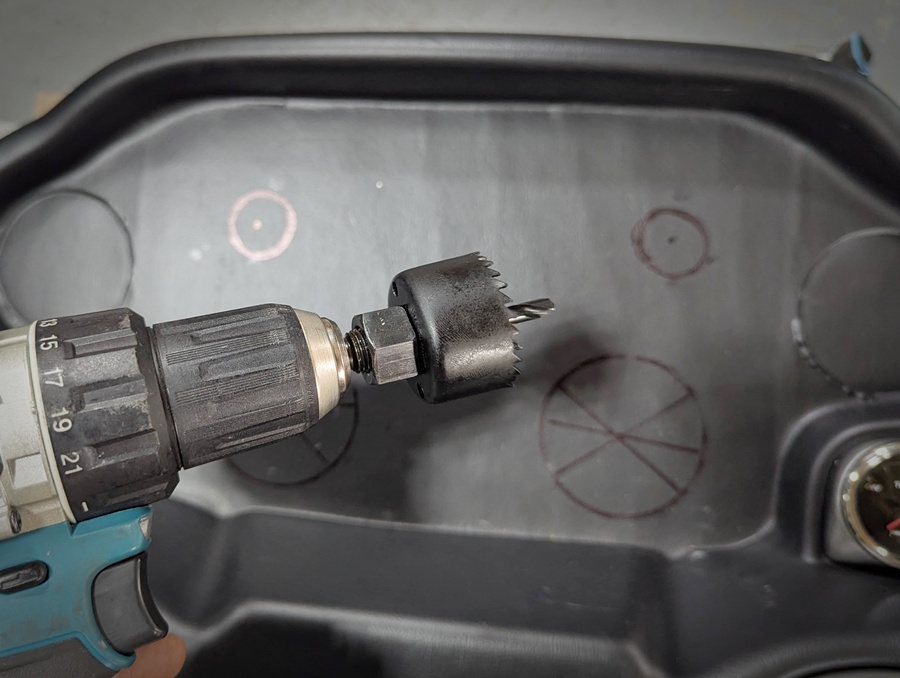 A hole saw is great for drilling a round hole for a gauge or a plug.