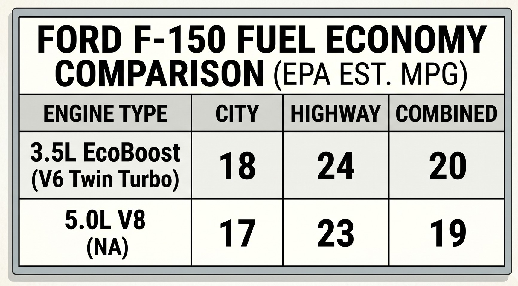 For the F-150, the V6 Turbo gets 20 MPG vs. the V8’s 19 MPG.