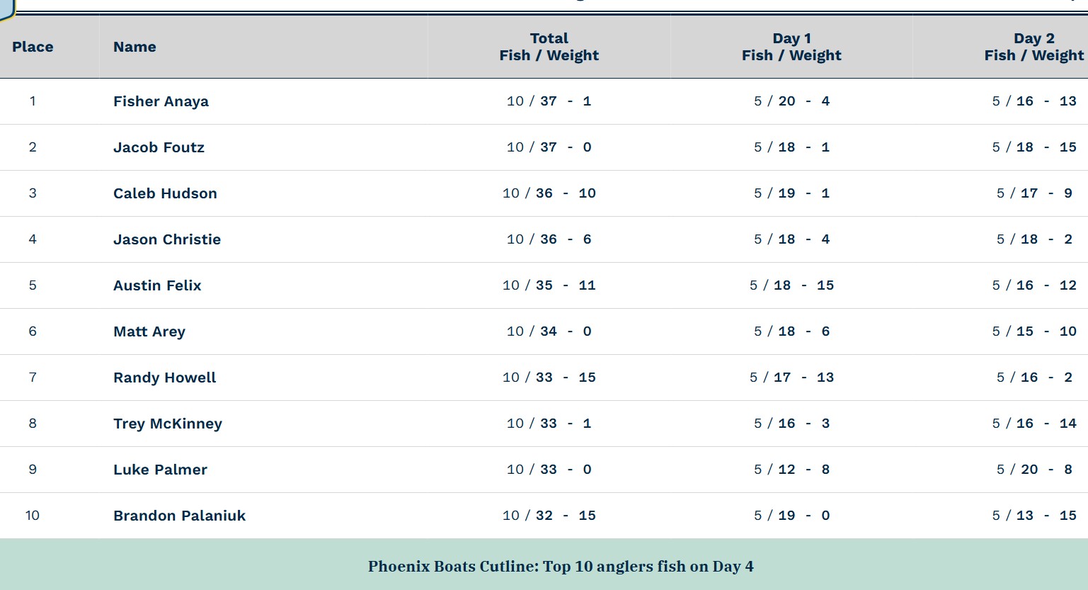エリート第4戦アーカンソーリバー2日目、フィッシャー・アナヤが辛くも暫定トップを堅守。