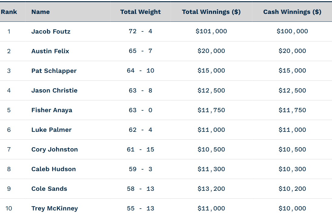 アーカンソーリバー戦決勝、ジェイコブ・フォウツが奇跡の6パウンダーで逃げ切り優勝!