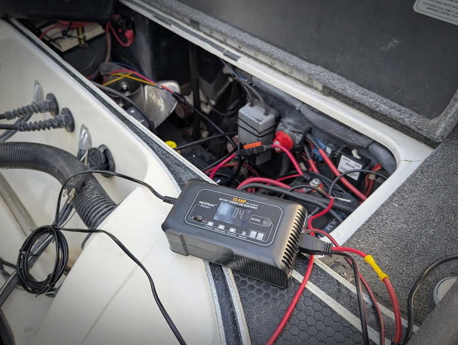But my 12V cranking battery died on the lake due to a charger failure.