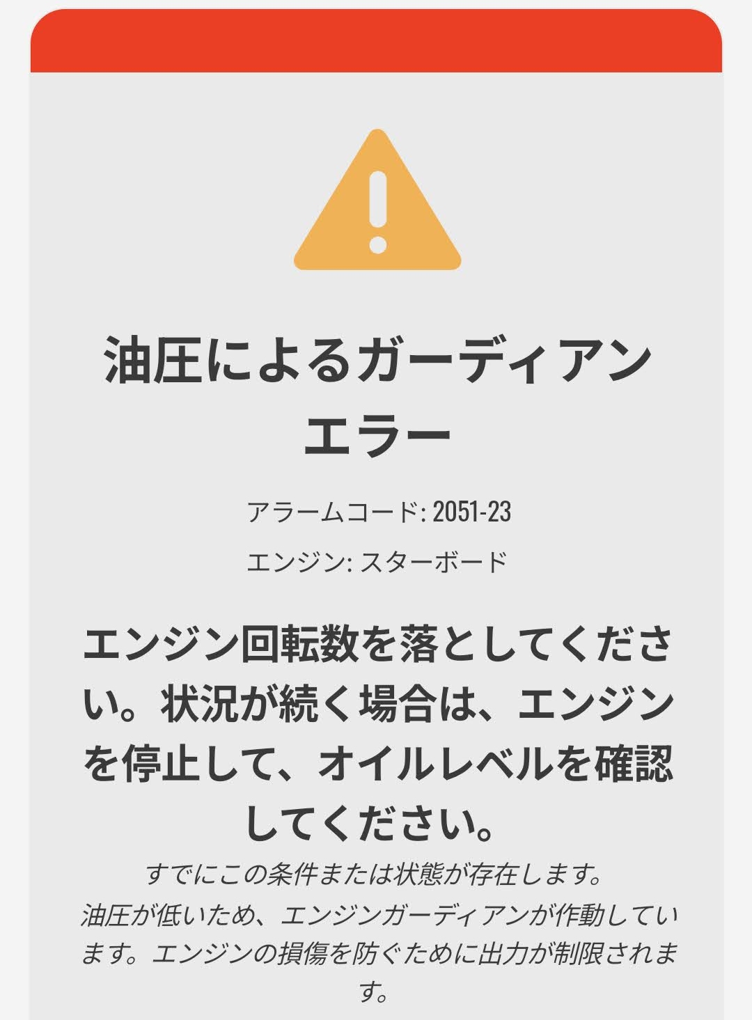 Running at full throttle causes low oil pressure, triggering Guardian Mode.